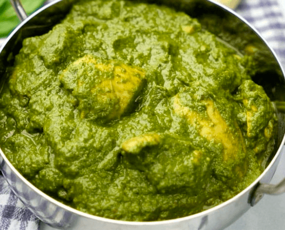 Spinach and homemade cheese cooked in a curry and cream or coconut cream