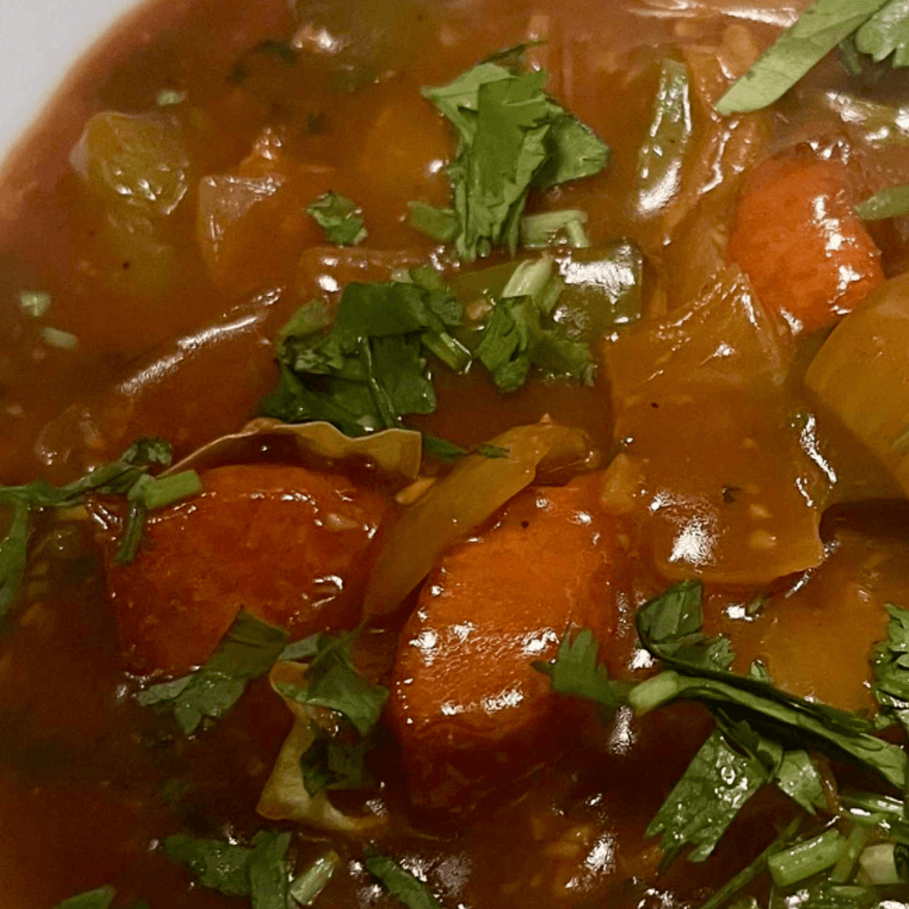 Lentil soup with vegetables seasoned with spices & herbs