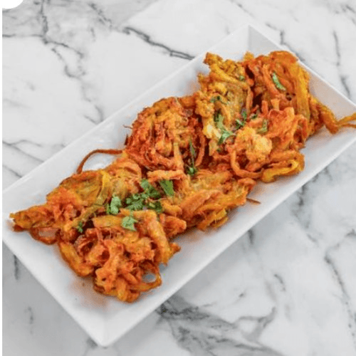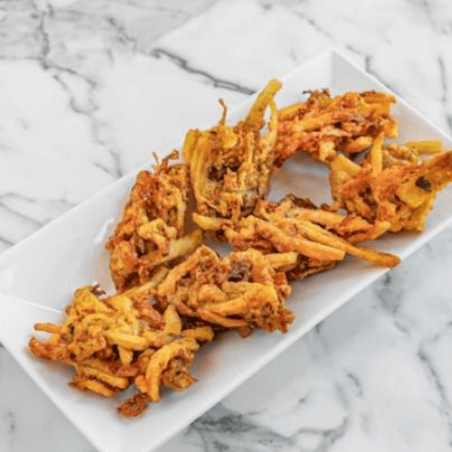 Mildly spiced onion, batter-fried