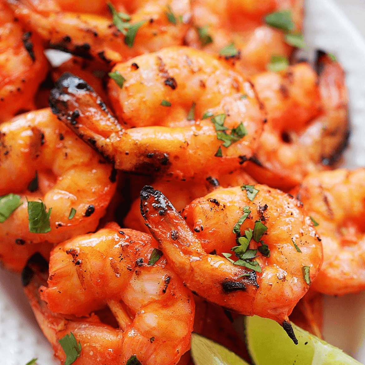Jumbo shrimp marinated and cooked on skewers in a oven