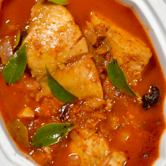 Chicken pieces cooked with blend of hot spices (traditionally a very hot dish)