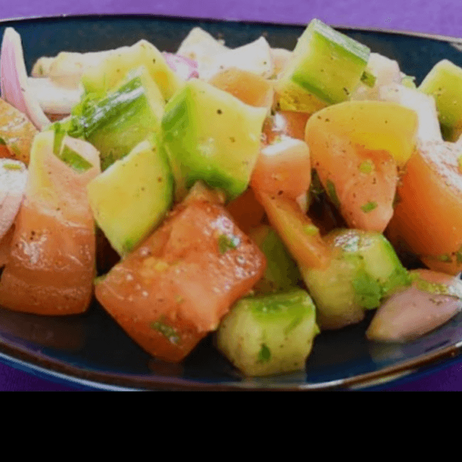 CHOPPED CUCUMBER, TOMATO, & ONION TOSSED IN CHAAT MASALA