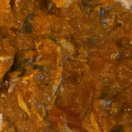 Chicken cooked in a gravy of yogurt, tomato, aromatic spices, and herbs