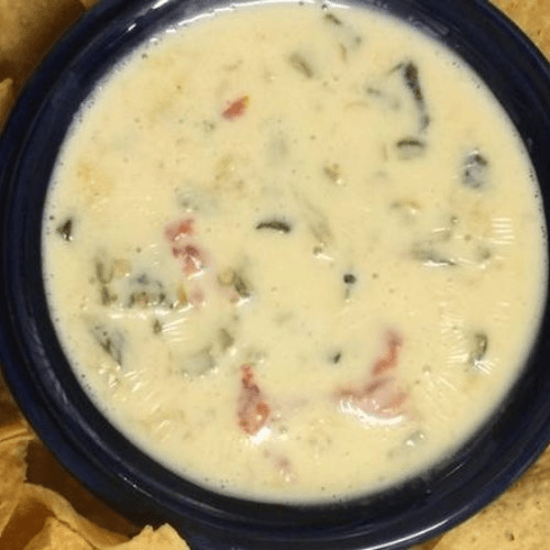 Three cheese blend melted with grilled Anaheim chilies, onions, tomatoes and jalapeños. Served with fresh tortilla chips