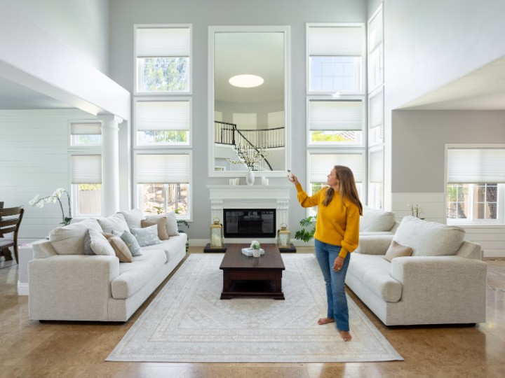 Motorized cellular shades offer convenient control over light and privacy but also provide superior insultation, helping to maintain a comfortable temperature in your home year-round.