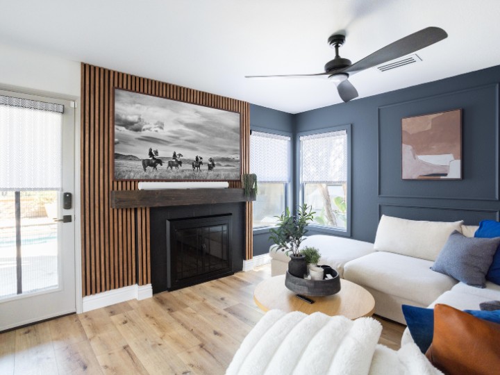 Modern convenience at your fingertips – motorized woven wood shades offer sleek style and effortless control.