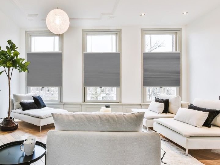 Cellular shades, also known as honeycomb shades, feature a unique design with honeycomb-shaped pockets or cells that create insulating layers between the window and your room. These pockets trap air, acting as a barrier to outside temperatures. In cooler months, they help keep warm air inside and reduce energy consumption by maintaining a more consistent indoor temperature.
